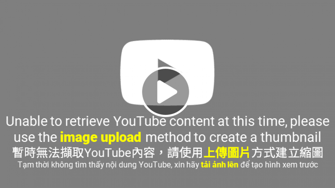 Unable to retrieve YouTube content at this time, please use the image upload method to create a thumbnailUnable to retrieve YouTube content at this time, please use the image upload method to create a thumbnailUnable to retrieve YouTube content at this time, please use the image upload method to create a thumbnail